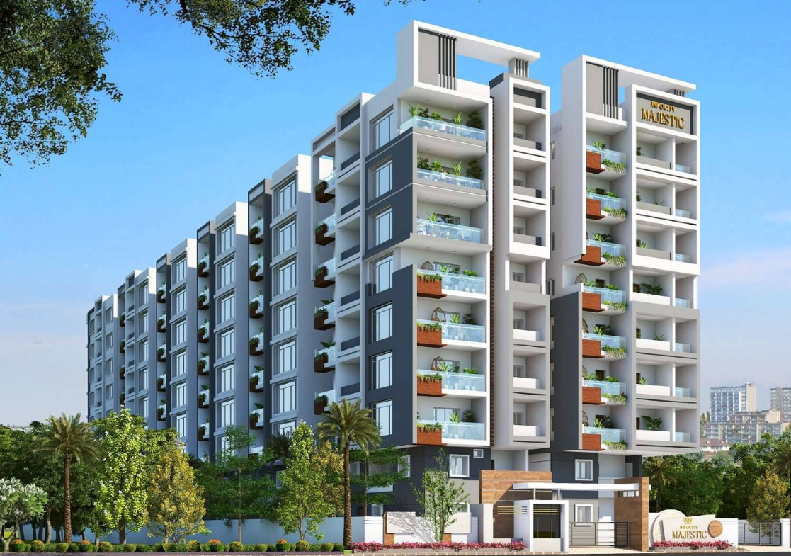 Infocity Majestic is an upcoming housing society located in Kismathpur, Hyderabad. Developed by Infocity Infratech and Majestic Builders, this project is scheduled for possession in April 2028. It offers a range of property options across different price points, making it accessible to various homebuyers. As a RERA-registered society, Infocity Majestic ensures transparency and reliability, with project details available on the state RERA portal. The society features essential amenities such as a Swimming Pool, Solar Lighting, and Barbecue facilities. Situated near landmarks like Cocoon Hospital and Rajendranagar bus depot, Infocity Majestic provides convenience and accessibility to residents. With its strategic location and promising features, Infocity Majestic presents an attractive housing option in Hyderabad’s real estate market.